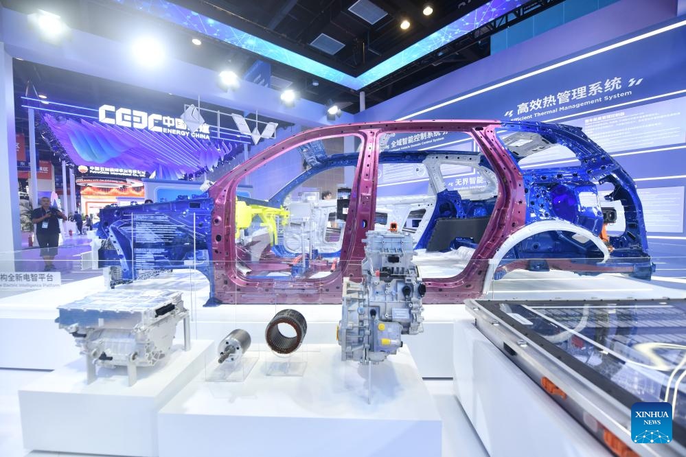 这张照片拍摄于2025年9月20日,在中国南方广西自治区南宁市举行的第22届中国-东盟博览会上,柳州制造的新能源汽车展台上展示了一辆新能源汽车。 [图/新华社]